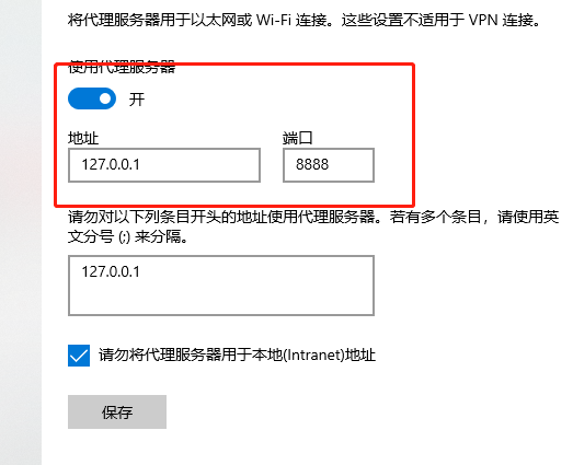 4、浏览器-》设置-》代理服务器:使用代理服务器,地址127.0.0.1,端口和Jmeter中HTTP代理服务器中的端口保持一致