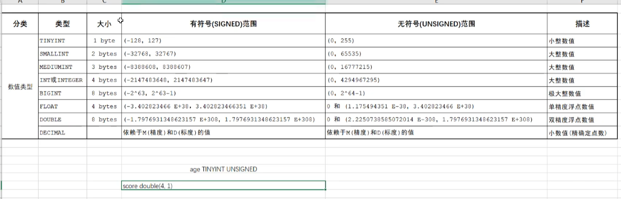 例如:age TINYINT UNSIGNED 表示使用 无符号 的范围,也就是0-255,否则使用是-128-127