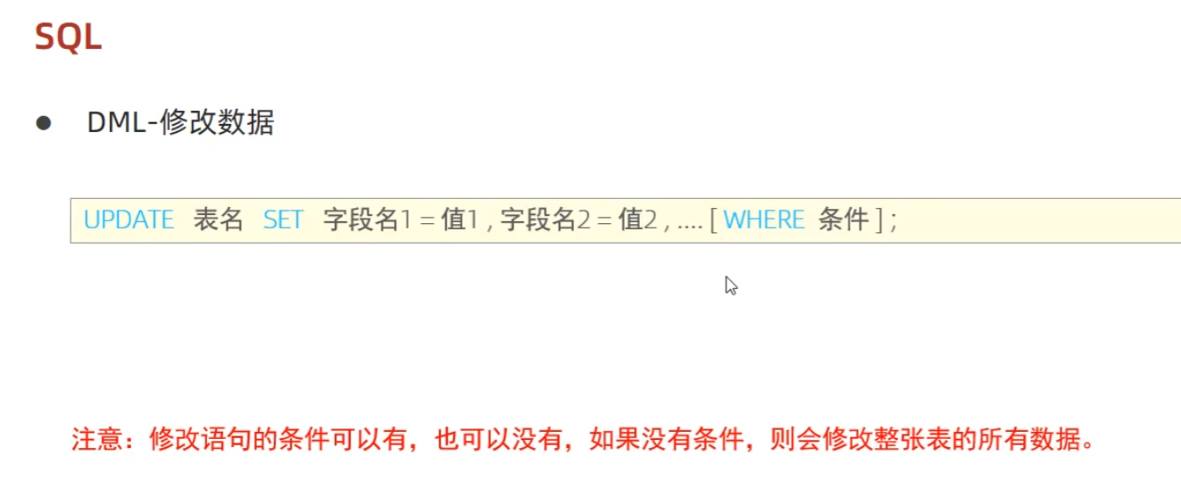 UPDATE employee SET NAME = 'itheima' WHERE id = 1; -- 更改id1的name为