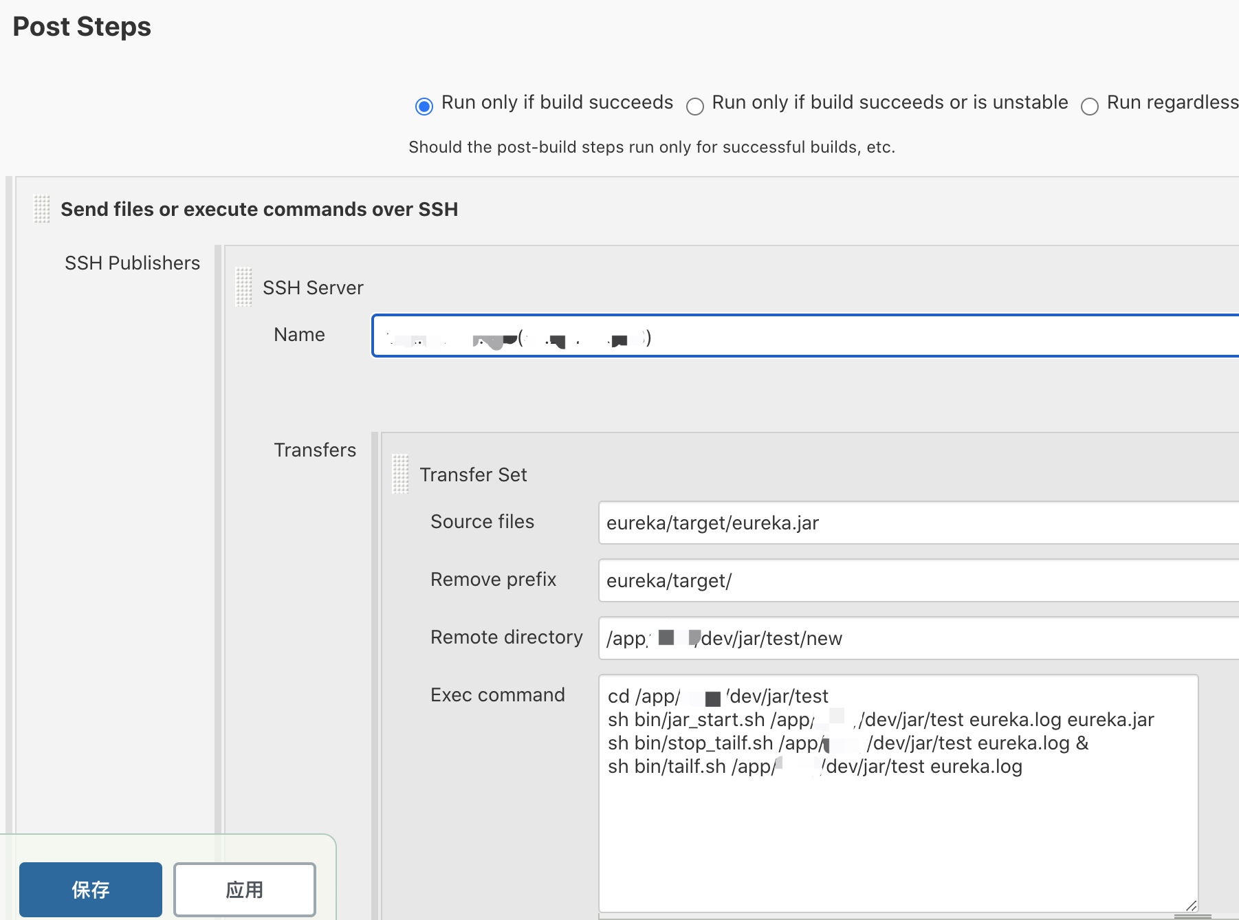 Run only if build succeeds:只有在构建成功后才会执行;选择图中的选项,添加服务器。