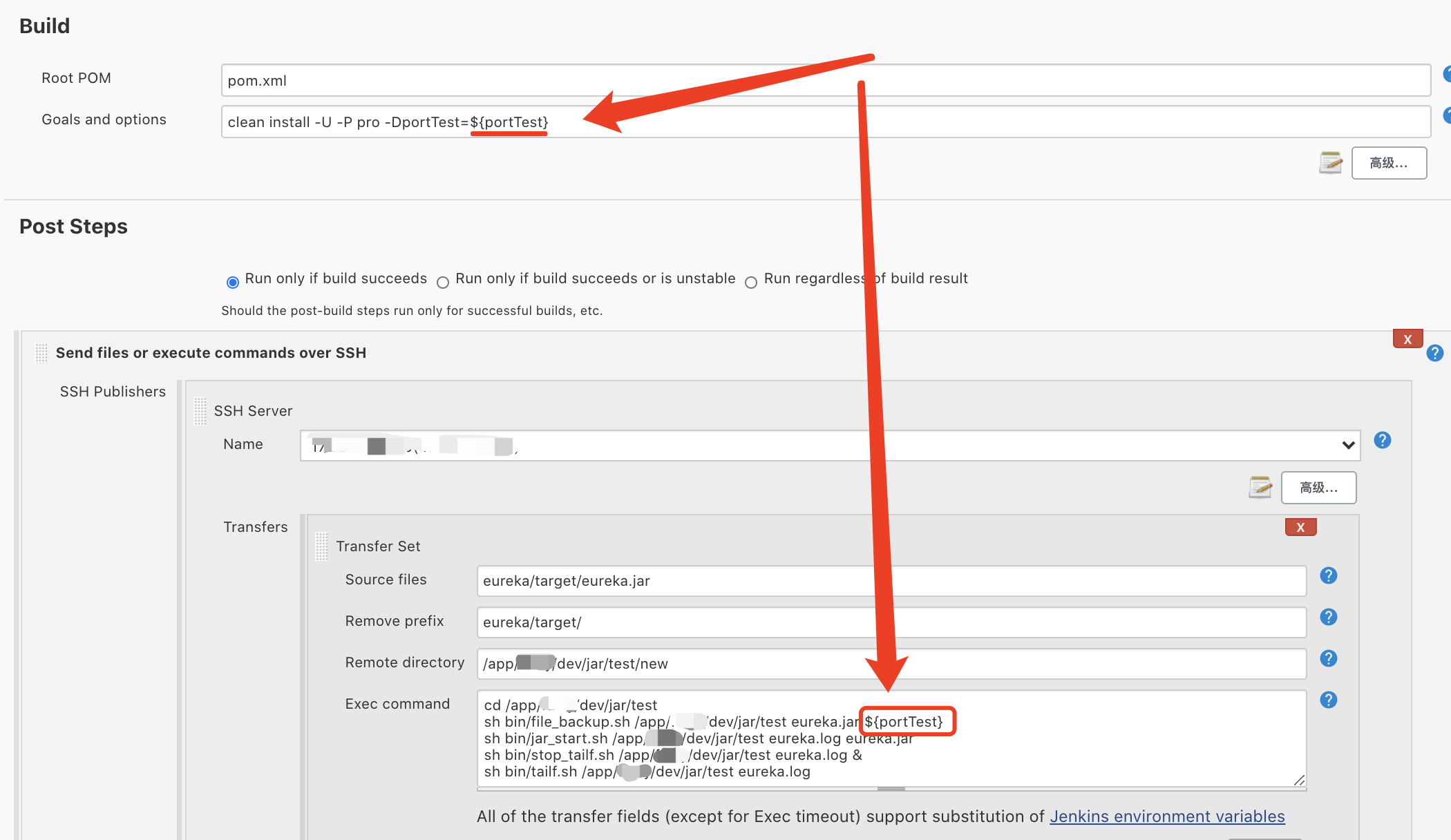 构建完成后,传输文件到指定服务器,并执行命令操作