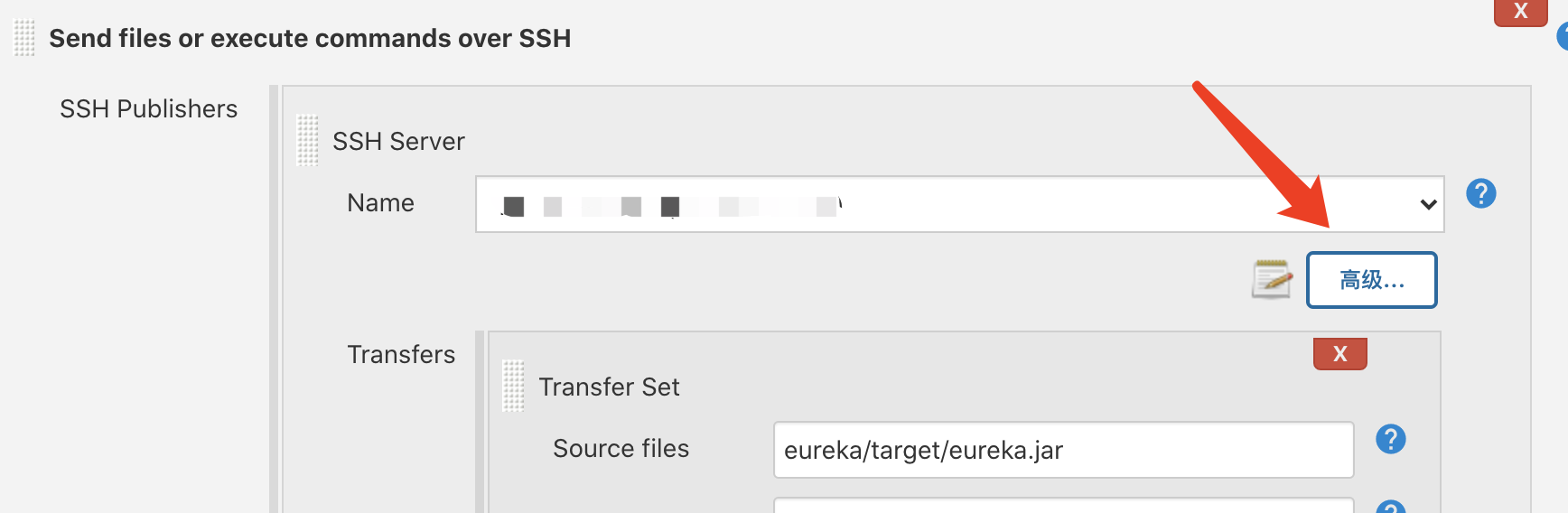 选择条件控制上传服务器,到ssh配置的位置,最下边有个‘高级’,点击。