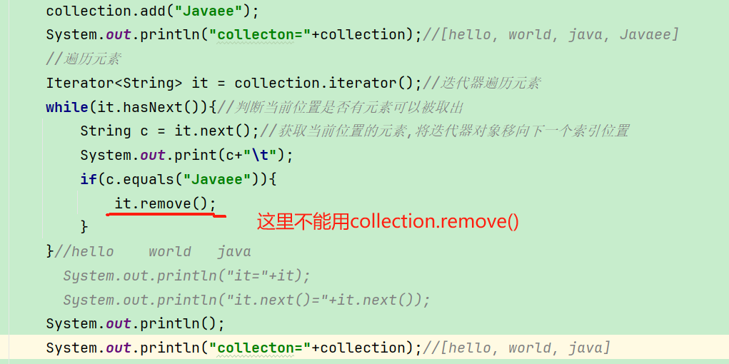 Iterator<String> it = collection.iterator();//迭代器遍历元素