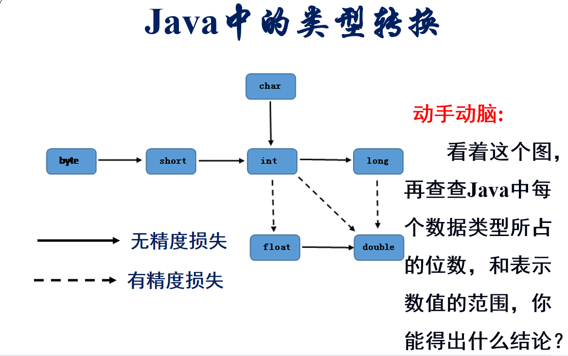得出的结论是表示数据范围小的向大的转化是无精度损失,小的向大的可能会出现精度损失。