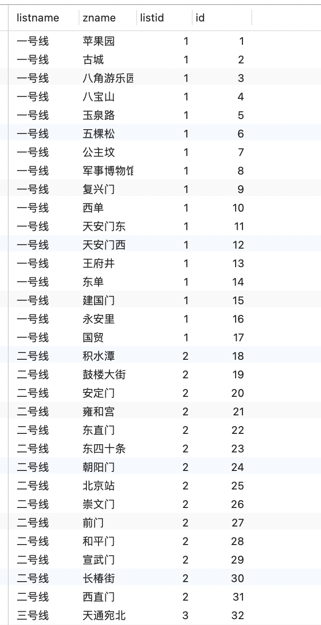 一共写了六条这样的表,分别存放不同号的线路信息(list1.list2.list3.list4.list5.list6)