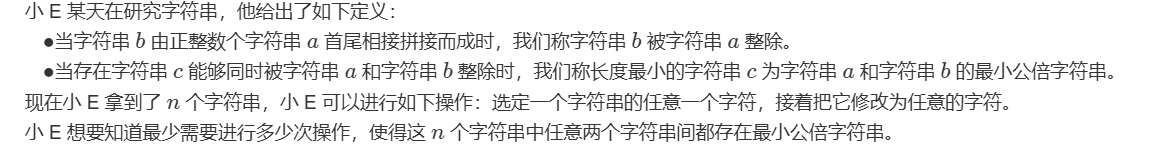 循环节的长度为这两个字符串长度的最大公约数,那么如果任意的两个字符串间都有最小公倍字符串,所以所有的字符串都由相同的循环节构成