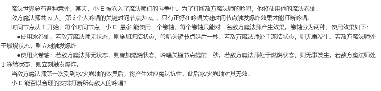 所以,题意可以转化为怎样去改变安排魔法师的位次使得任意时间上不存在两个魔法师需要应对
