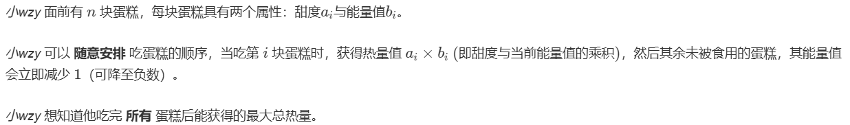 贪心做法,先吃甜度高的,甜度高的放在后面吃对答案的负贡献越大