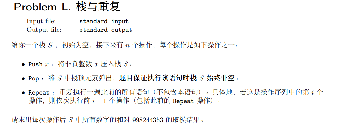 并且弹出 Pop 操作最多执行 \(2e5\) 次,那么当栈内元素大于 \(2e5\) 时可以忽略 Repeat 操作,否则就利用数组依次复制栈内元素