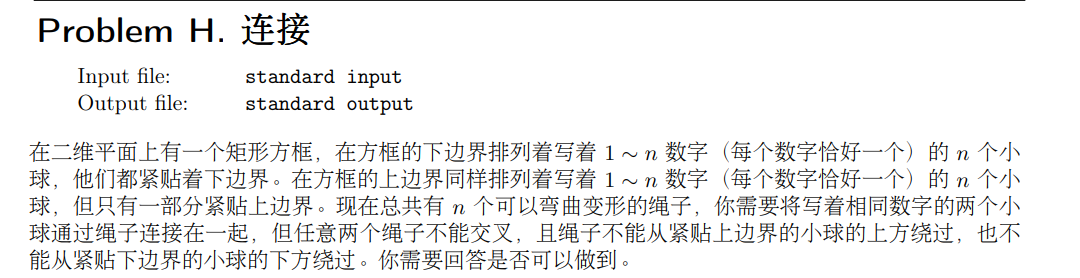 可以发现出现交叉的情况下无解,并且能出现交叉当且仅当上面紧贴边界的小球与下面紧贴边界的小球出现交叉