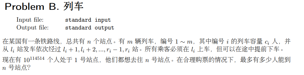 原问题相当于对一段区间 \([l,r]\) 进行区间修改,每一站的最大乘车人数相当于覆盖这个点的线段的权值和