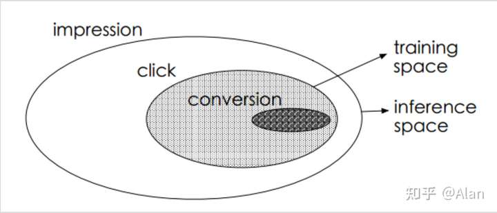 以电子商务平台为例,用户的购买行为一般遵循以下的顺序决策模式:impression-click-conversion,即用户先观察到系统推荐的产品,然后会对自己感兴趣的商品进行点击,进而产生购买行为。从点击到购买的转化我们称为post-click Conversion rate(以下简称CVR),CVR的预估在信息检索、推荐系统、在线广告投放等工业级应用中是至关重要的。