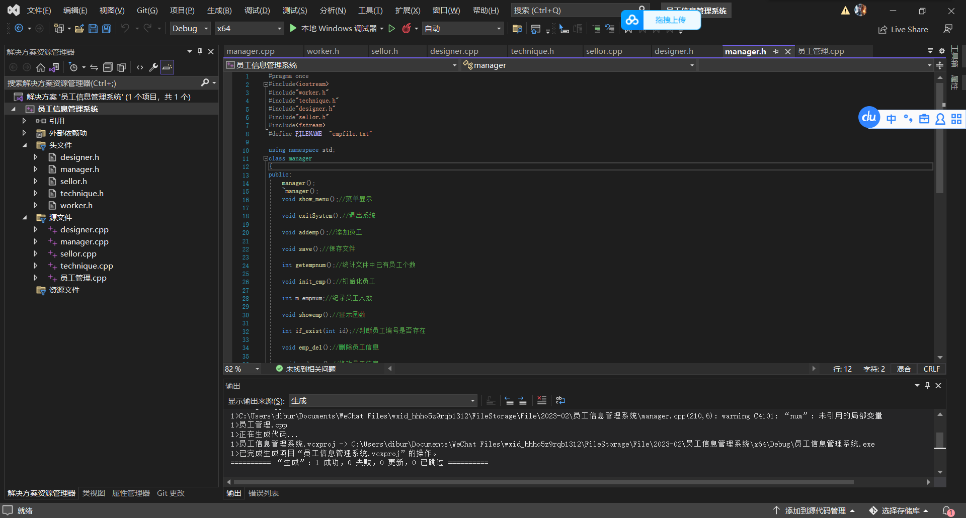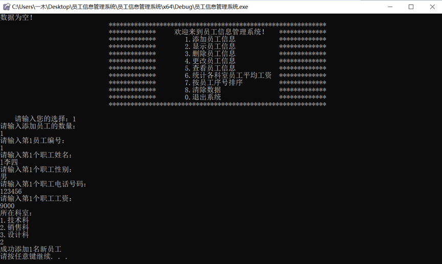 本次课程设计我逆向开发的软件是一个使用c++编写的员工信息管理系统,原作者是21计算4班的彭星辰,学号2152426,现在也是我在软工2班的同学。