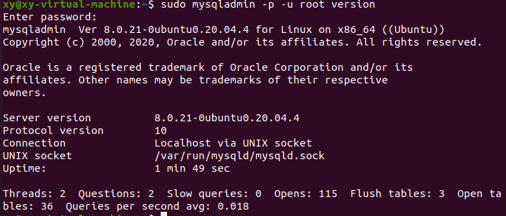sudo mysqladmin -p -u root version