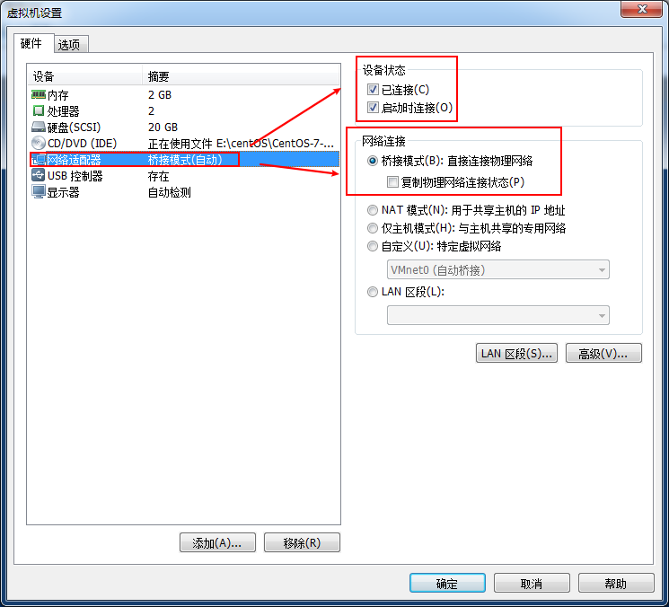 基于VMware的centOS7 桥接方式 配置