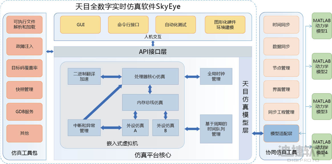 天目全数字实时仿真软件SkyEye,是当前嵌入式处理器仿真领域的代表性工具之一。作为一款支持多架构处理器(如 ARM、RISC-V、DSP、PowerPC、MIPS 等)及其外设接口建模的全数字仿真平台,可为嵌入式系统构建高保真的虚拟运行环境,具备可视化建模与硬件行为级仿真能力。在 PASA分析过程中,SkyEye可用于在物理样机尚未成型之前的系统级软件加载、运行逻辑验证与故障行为观测,有效支撑对关键处理器失效模式的早期建模与响应机制验证,从而提升安全性分析的前置深度与执行效率。