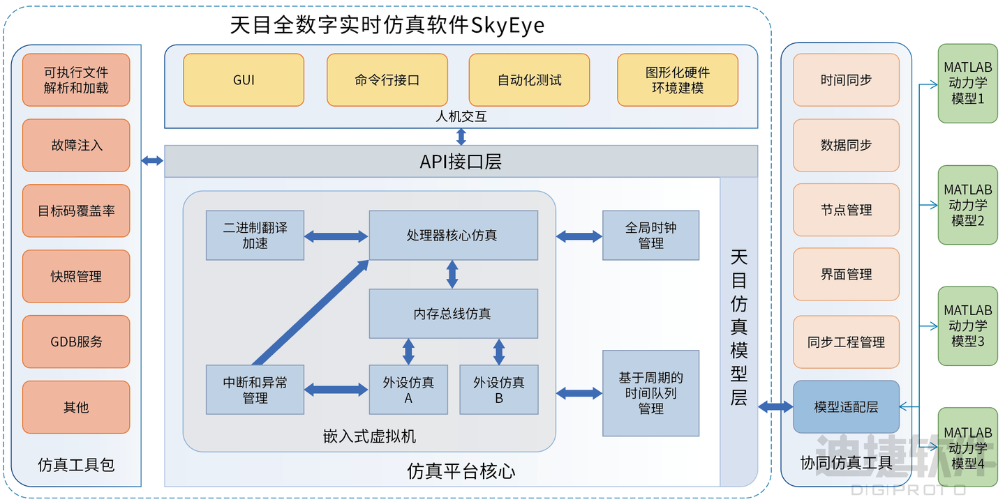 天目全数字实时仿真软件SkyEye正是在这一背景下应运而生。作为一款基于可视化建模的硬件行为级仿真平台,SkyEye支持用户通过拖拽的方式快速构建目标系统的虚拟化运行环境,打通从芯片级到系统级的全流程建模路径。工程师可在不依赖物理硬件的条件下,灵活访问目标平台,提前开展软件的开发、测试与验证,实现高频率、高质量的版本迭代。