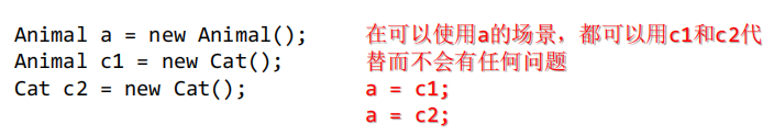 子类型多态:客户端可以用统一的方式处理不同类型的对象。如果对于类型 T 的对象 x,q(x) 成立,那么对于类型 T 的子类型 S 的对象 y,q(y) 也成立。如下所示,Cat() 是 Animal() 的子类型: