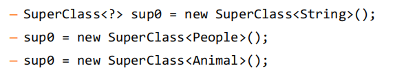 2)下限通配符<? super A>:以 A 为下限,可以指向 A 或 A 类型的超类;