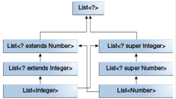 泛型是类型不变的,ArrayList<String> 是 List<String> 的子类型,但 List<String> 不是List<Object> 的子类型,这两个之间没有关系。若想实现两个泛型类之间的协变,可以采用通配符 “?”。List<Number> 是 List<?> 的子类型,也是 List<? extends Object>、List<? super Integer> 的子类型。