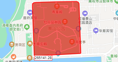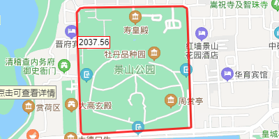 以北京景山公园为例:百度资料显示是23公顷[即0.23平方千米],地图上框出来的面积是:0.26514128平方千米左右,实际上相差不大(还是比较准)。