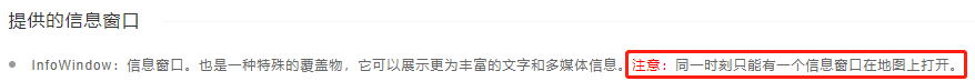 由于同一时刻地图上只能打开一个信息窗口,这显然无法满足我这的需求。故而这里直接使用百度地图提供的另一个 自定义信息窗口工具:InfoBox