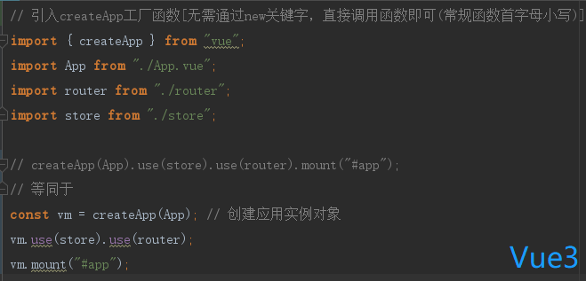 A:创建应用实例方法 的区别【2:Vue构造函数;3:createApp工厂函数】