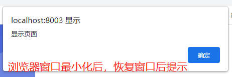 // 通过visibilitychange事件监听 visibilityState状态值的变化 document.addEventListener('visibilitychange', function() { console.log(document.visibilityState) if (document.visibilityState == 'hidden') { console.log('隐藏') alert('隐藏页面') } else if (document.visibilityState == 'visible') { console.log('显示') alert('显示页面') } }) // 或 // 通过visibilitychange事件 直接监听 hidden值的变化,看页面是否被隐藏 document.addEventListener('visibilitychange', function() { console.log(document.hidden) if (document.hidden) { console.log('隐藏') alert('隐藏页面') } else { console.log('显示') alert('显示页面') } })