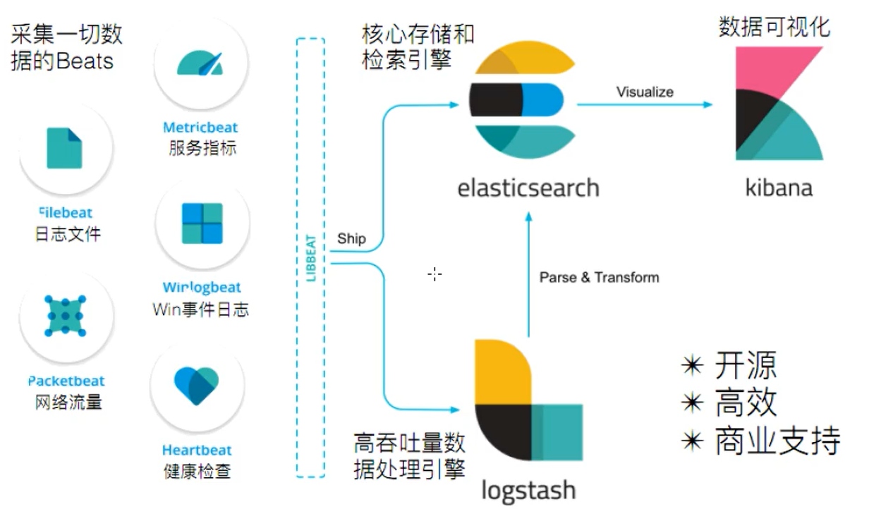 Beatselasticage是公司开源的一款采集系统监控数据的代理,是在被监控服务器上以客户端形式运行的数据收集器的统称,可以直接把数据发送给 ElasticsearchLog者通过发送给,然后进行后续的数据分析活动。