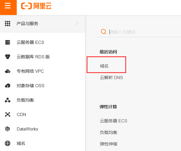 1.购买域名,登录阿里云,打开控制台,找到域名模块