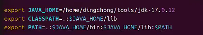 export JAVA_HOME=/home/dingchong/tools/jdk-17.0.12