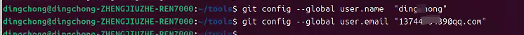 git config --global user.name "dingchong"git config --global user.email "1374448439@qq.com"