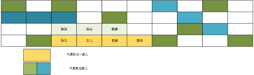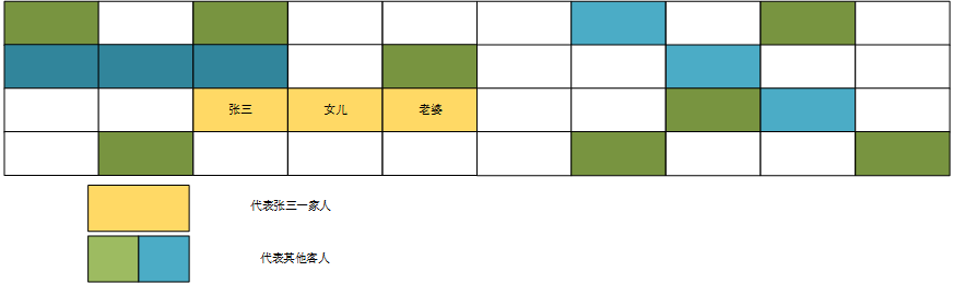 张三和张三的老婆、女儿去看电影,选座位的时候肯定要求座位是连坐,A座1号、A座2号、A座3号。