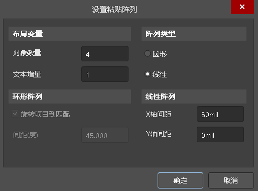 成对的复制粘贴焊盘:选中单个焊盘,在编辑(E)中选择特殊粘贴-粘贴阵列,配置设置,完成之后,点击原焊盘的中心,生成。(EA)