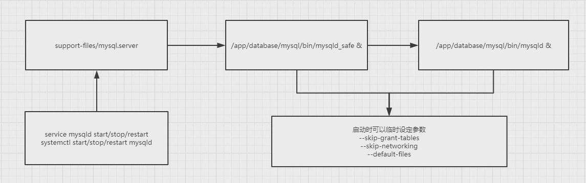 systemctl start mysqld ----> mysql.server ---->mysql_safe ---->mysqld