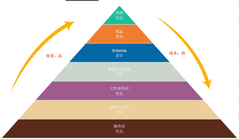 优化范围: 存储、主机和操作系统: 主机架构稳定性 I/O规划及配置 Swap OS内核参数 网络问题 应用程序:(Index,lock,session) 应用程序稳定性和性能 SQL语句性能 串行访问资源 性能欠佳会话管理 数据库优化:(内存、数据库设计、参数) 内存 数据库结构(物理&逻辑) 实例配置