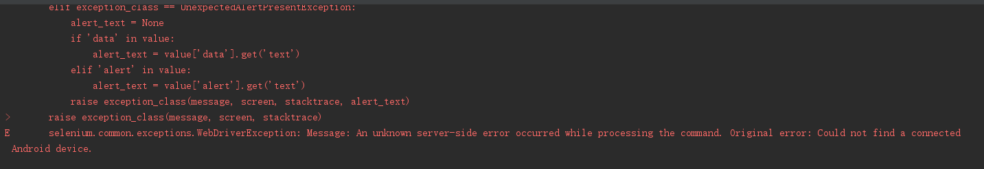 安装夜神模拟器后,运行appium脚本提示找不到设备,报错如下