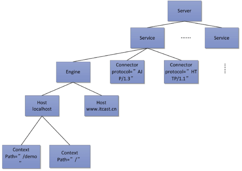 主要配置文件为server.xml,server.xml的结构如下