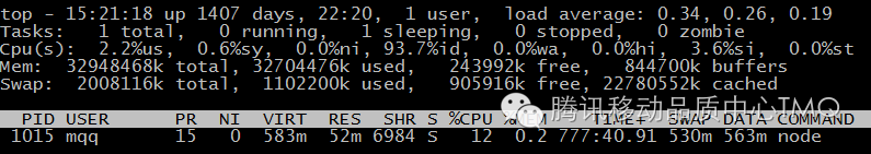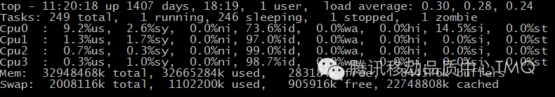下图是线上开放平台转发服务某台服务器上top命令的输出,下面以这个服务为例对CPU各项指标进行说明