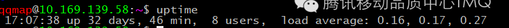 linux中,服务器负载使用uptime命令获取,该命令的输出如下图