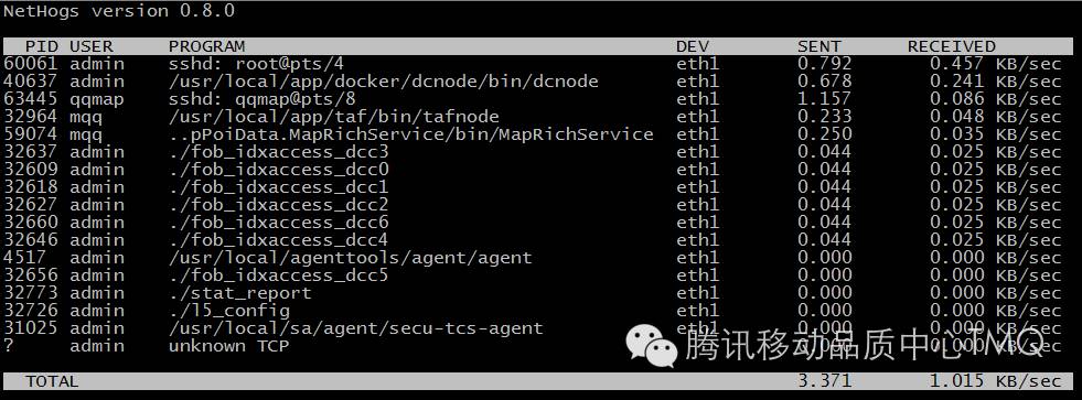 网络流量监控可以使用nethogs命令。该命令与top类似,是一个实时交互的命令,运行界面如下