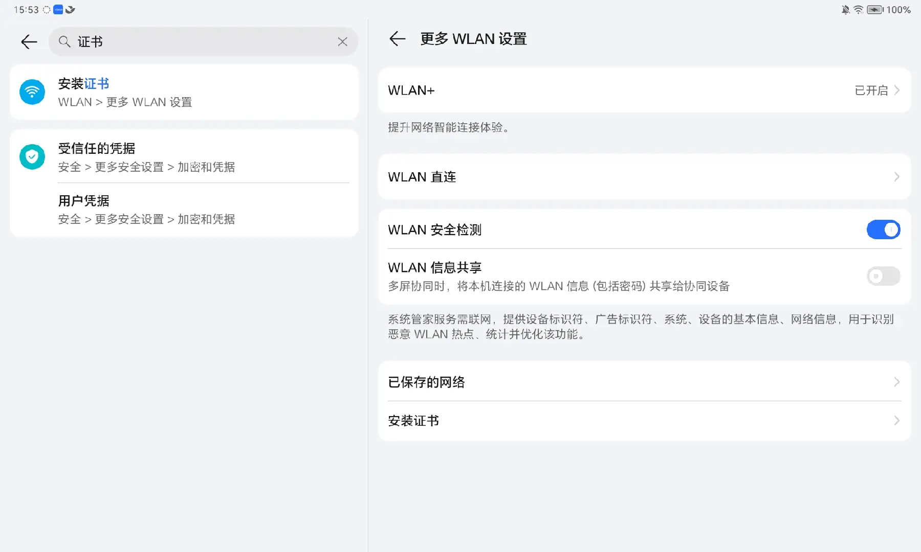 然后设备上搜索证书,找到相关操作进行安装即可(不通设备可能也不太一样)