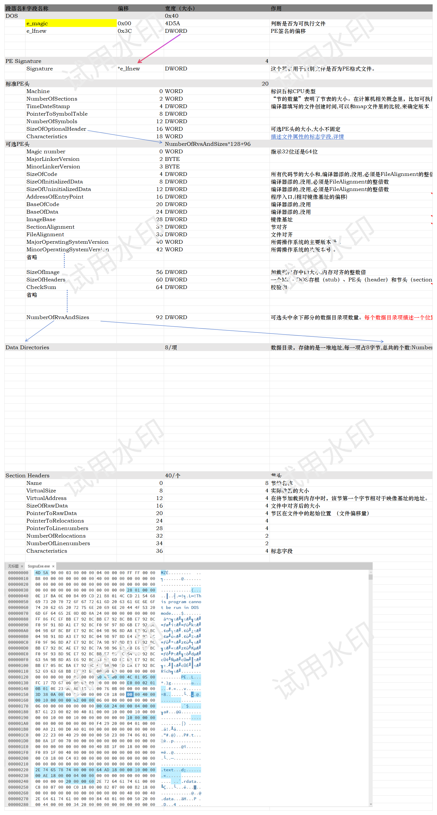 //各字段文件偏移和数据宽度