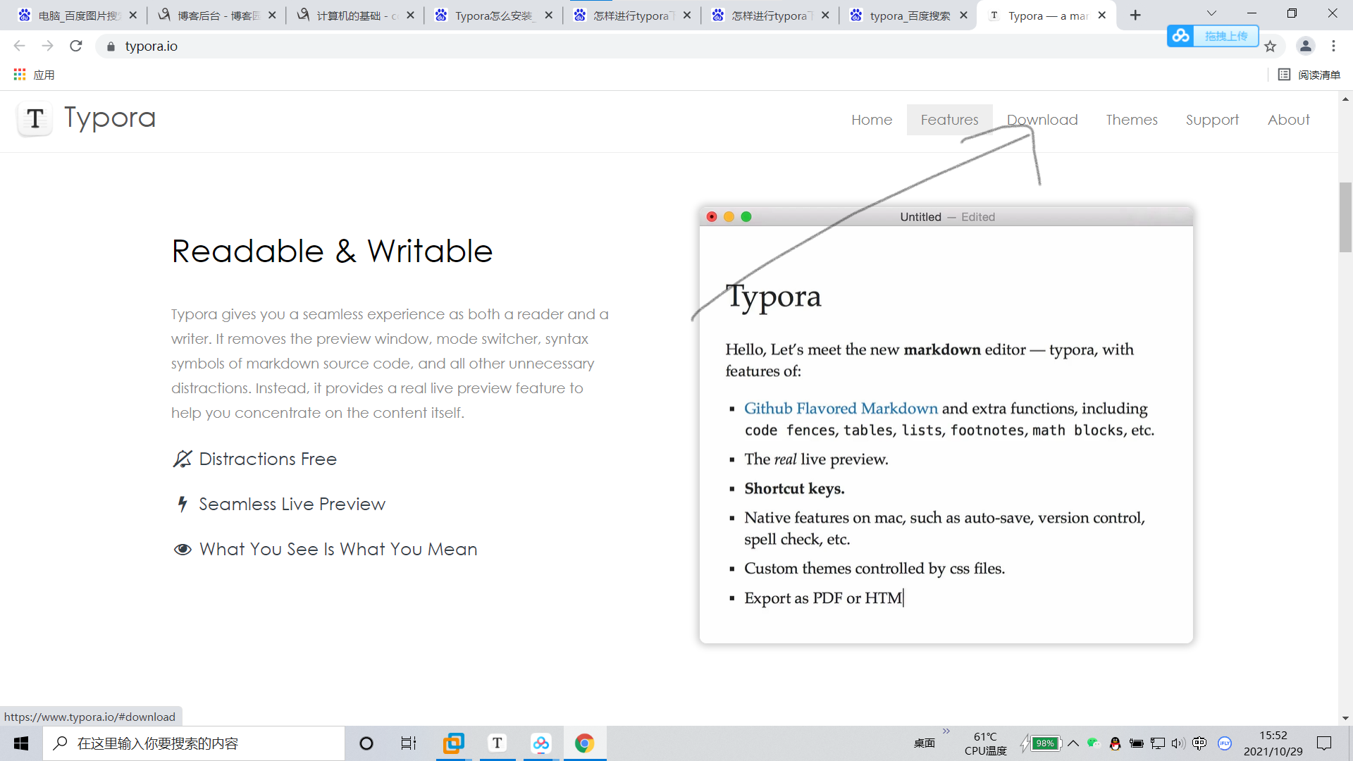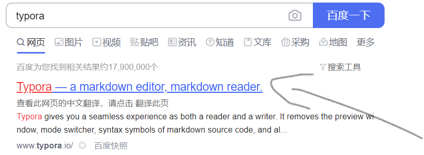 打开搜索引擎,搜索typora,选择如图所示的官网进入