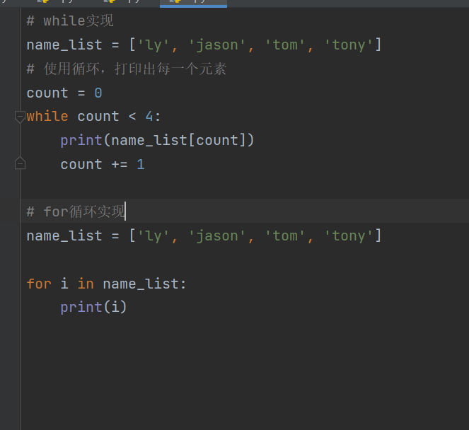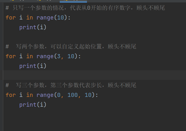 for i in 可迭代对象: # 字符串,列表,元祖,字典,集合...