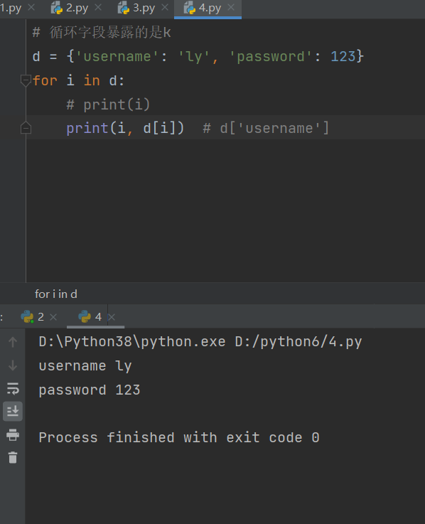 for i in d: 里面的i值可以是任意的变量,如果没有好的变量名,一般叫i, j, k, v, item等