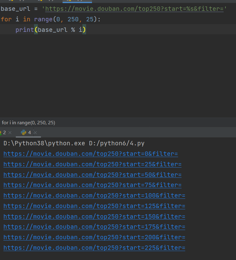 1 for i in range(10): 2 if i == 3: 3 break 4 print(i)