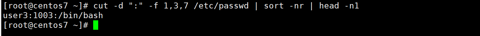 cut -d ":" -f 1,3,7 /etc/passwd | sort -nr | head -n1