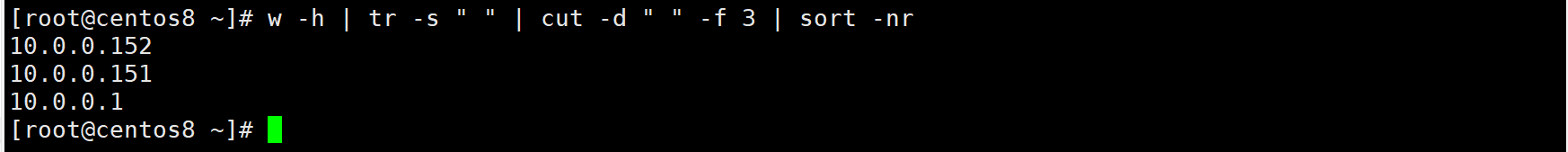 2) w -h|tr -s " "|cut -d " " -f3| sort -nr