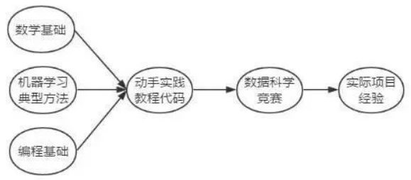 这幅图可以作为学习的基本流程,但是未必需要前面具备才往后进行,可以一边学基础,一边写代码,一边还可以做比赛,这样前期会痛苦一些,但在后面的学习过程中,速度会很快。